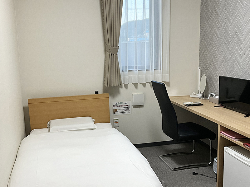 スクールバスで約10分ほどの距離にあるホテルです。お部屋は全室禁煙室となり、喫煙所がテラスにご用意しております。朝食・晩食はホテル食堂にて日替わり定食、昼食は教習所にてお弁当をご用意しております。イオンモール天童店へ行く、無料循環バスがございます