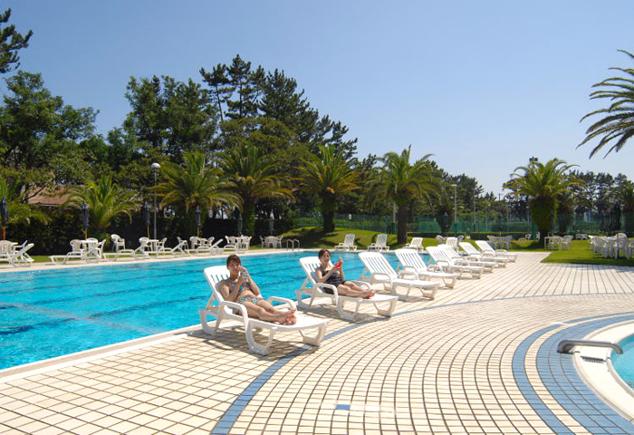 南欧風ビーチサイドリゾートホテルです。プールやテニスコートなどのスポーツ施設が備わっていますので、免許取得を目指しつつリゾート気分も味わえます。室内プールはオールシーズン無料でご利用可能!水着を忘れずに!!※プール以外は有料となります。