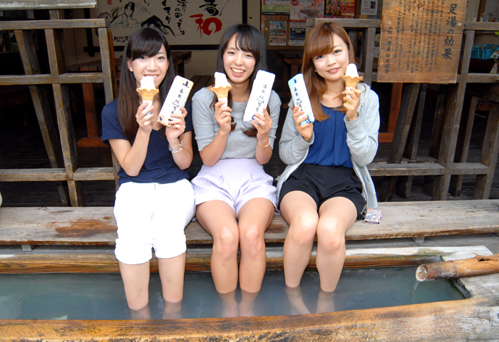 小野川温泉には足湯(無料)やお土産屋さん、ご当地グルメの「玉こんにゃく」などが売っています。散歩ついでにいかがでしょうか・・・!