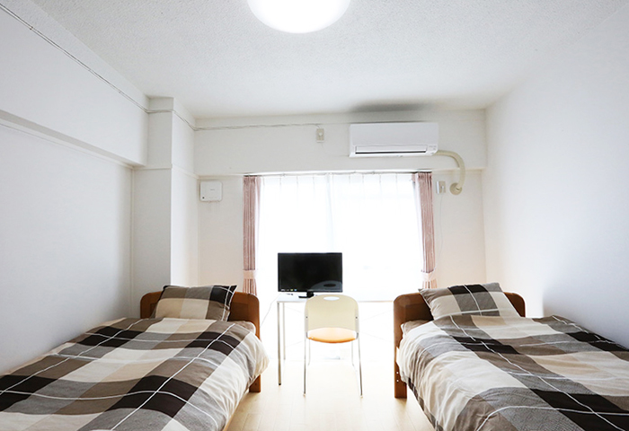 学校から徒歩2分の専用宿舎、「グリンヴィレッジ」のツインルームプランです。こちらは宿舎3階の女性限定階にご宿泊頂くプランとなります。